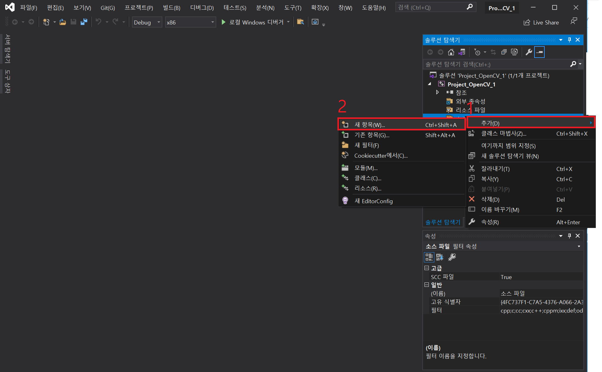 추가 포함 디렉터리에다가 $(OPENCV_INC)