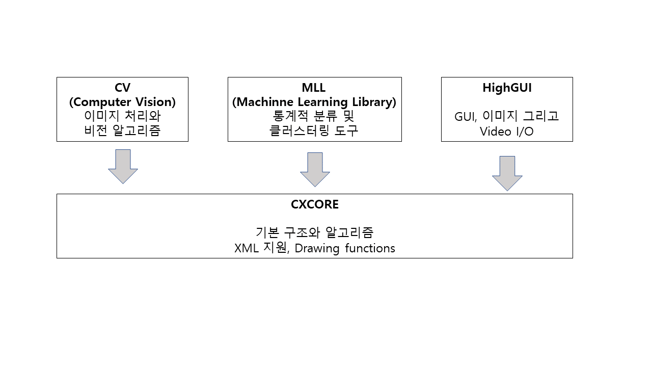 CXCORE : 이곳에는 기본 데이터 구조와 여러 content가 구성되어 있다.
